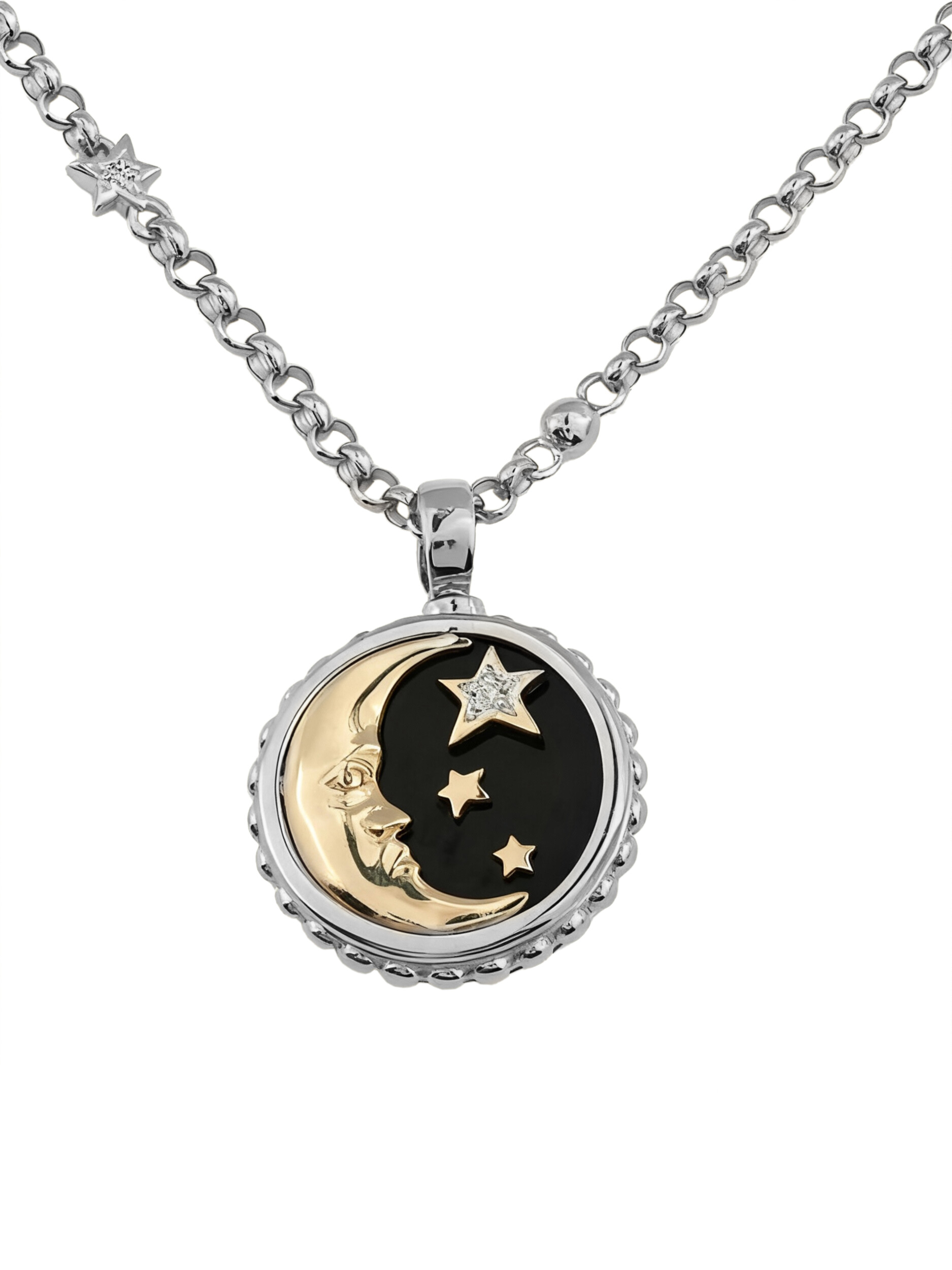 Колье из белого золота c бриллиантами, ониксом и перламутром