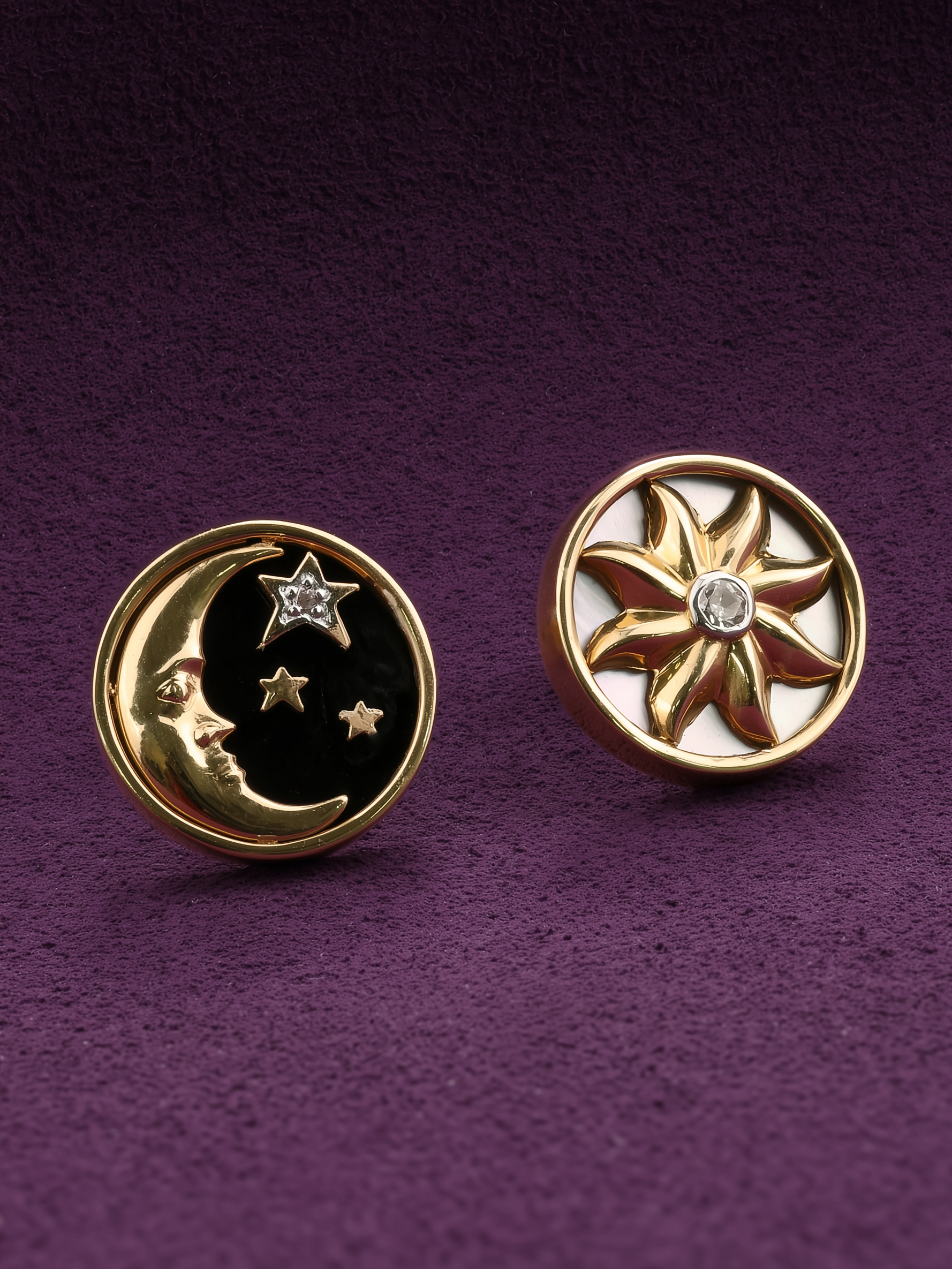 Серьги из золота c бриллиантами, ониксом и перламутром
