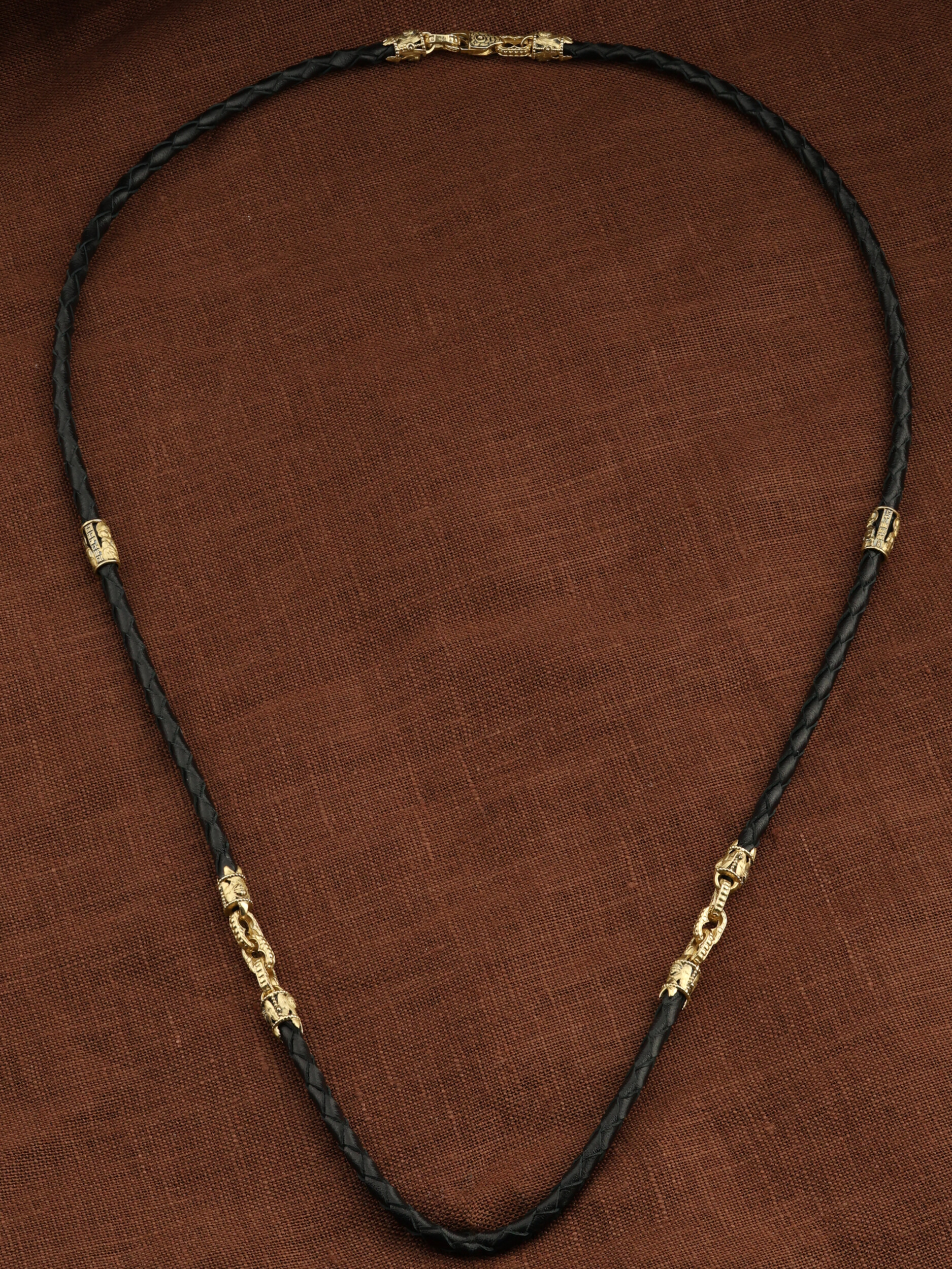 Гайтан из лимонного золота c кожаным шнурком
