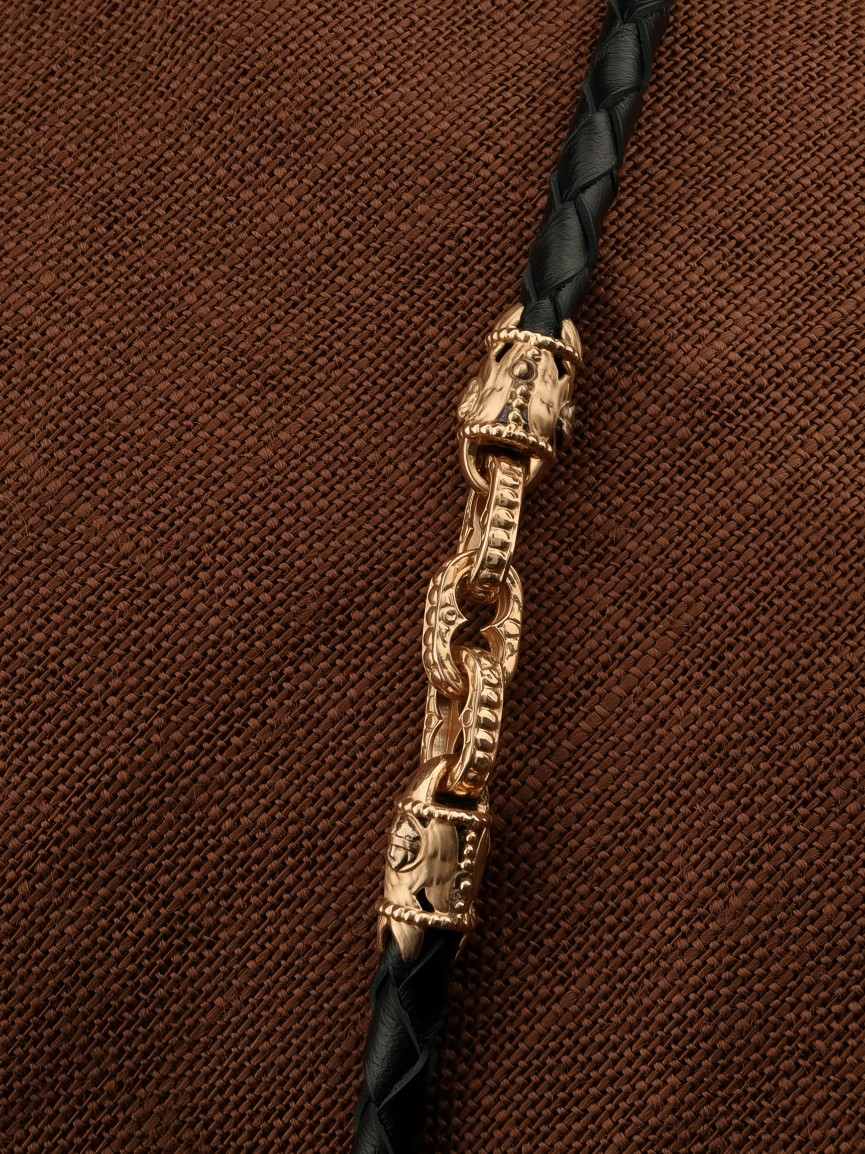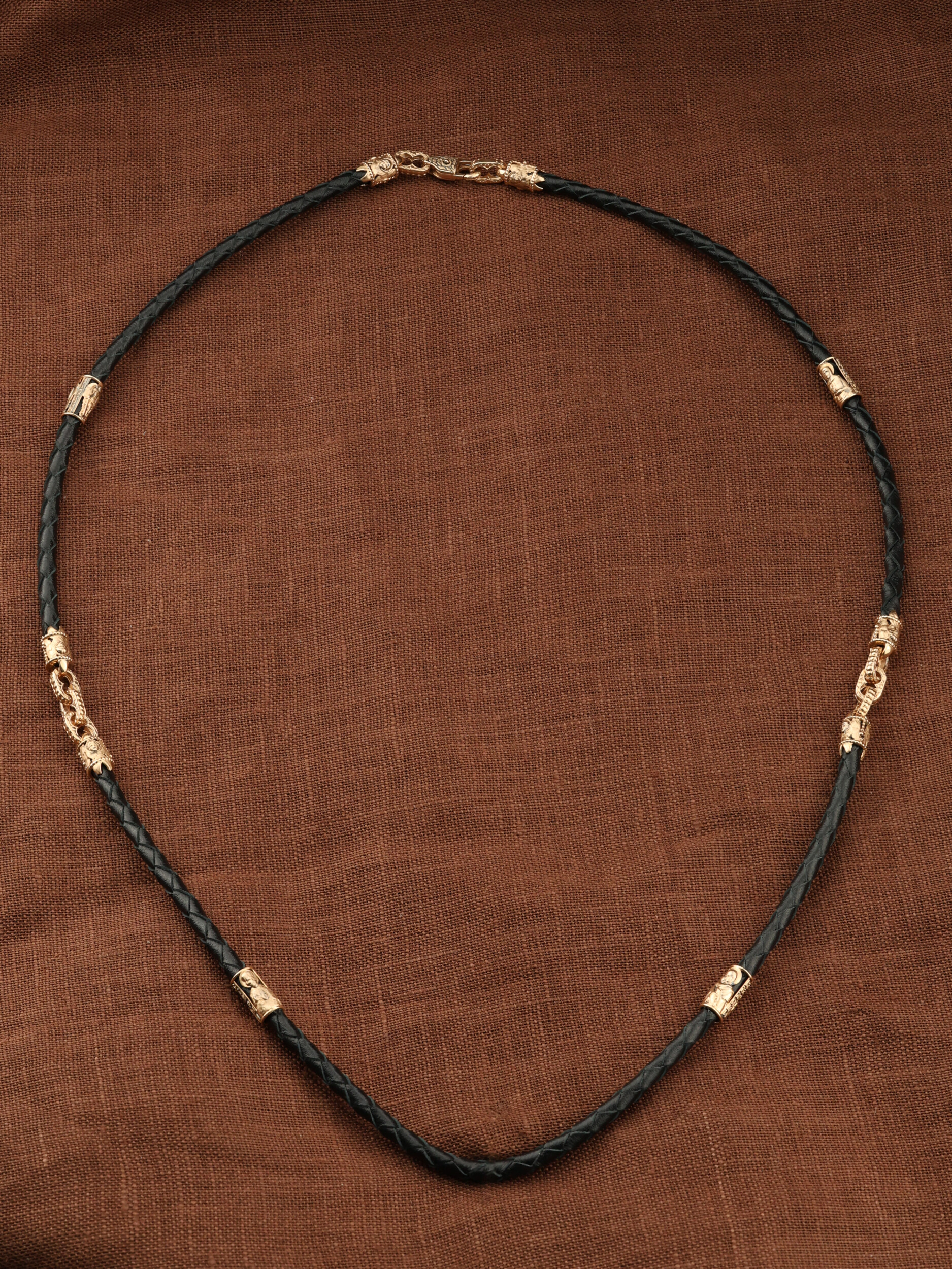 Гайтан из золота c кожаным шнурком